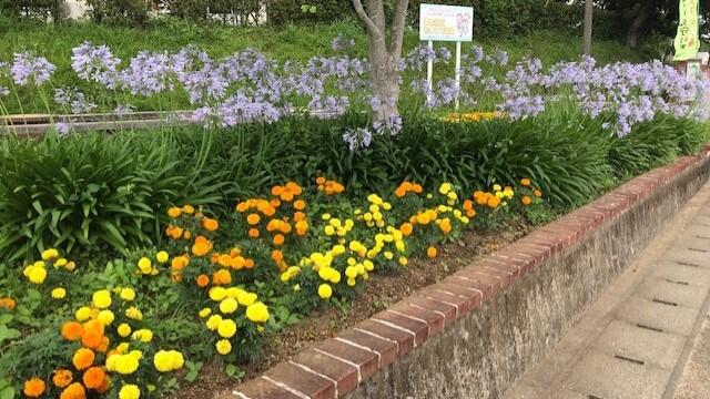 以前紹介した3年生の花壇です。植えるのが早かったので、きれいに花が咲き誇っています。