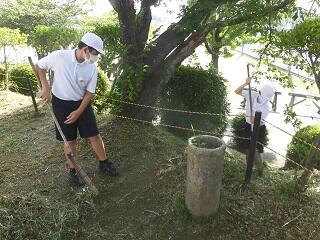 26日(日)玉名市教委の依頼によりシルバー人材センターの方々に校地内の草刈りをしていただきました。とてもきれいになりました。大変ありがとうございました。