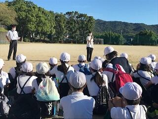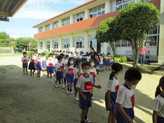 15日(木)朝、8時、6年生が長崎修学旅行へ出発しました。心配された台風は大丈夫のようですが、暑さが厳しくなりそうなので、熱中症が心配です。出発式では、企画委員会の児童の進行で、修学旅行の意義や健康や行動での注意点を確認して、みんな元気よく出発していきました。