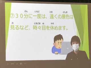 朝、8時25分よりオンライン集会を行いました。内容は、タブレットの約束、ボールの片づけについて、生活目標等です。子どもたちは、真剣な表情で聞き、先生の問いかけにも元気よく答えることができていました。
