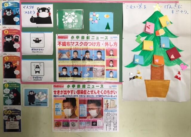 今年も残りが少なくなりました。最近は、コロナ感染症やインフルエンザが流行し始めています。感染予防を徹底して、残りを過ごせればと思っています。今日は、保健室前の掲示物の紹介です。