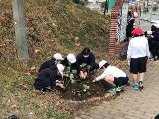 5校時、3年生が、校門前の花壇の花植えをしました。午前中に花植えボランティアの方に草取りをしていただいた場所です。おかげでとても植えやすかったです。花植えボランティアの方大変ありがとうございました。3年生も手分けして上手に植えることができました。みんなありがとうございます。