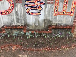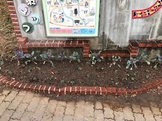 花壇の花植え(校門前)