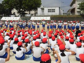 本日(5/22)、運動会の全体練習を運動場で行いました。開会式の流れや準備体操、三団ごとの応援団練習など全学年の児童が頑張っていました。