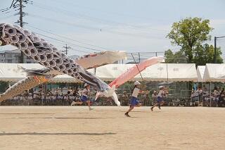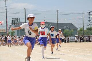 運動会の1年生の玉入れから、6年生の徒競走、2年生のこいのぼりリレーを掲載しています。子どもたちの真剣な表情はすてきです。