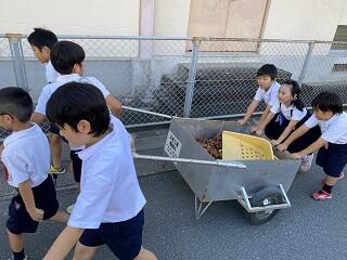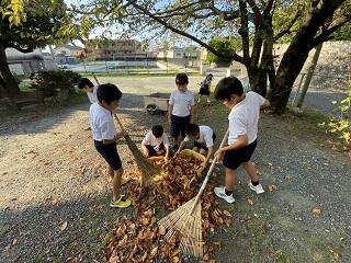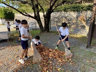昨日と本日、なかよし学級の子供たちが、体育館前の桜の木の落ち葉集めをみんな協力して頑張りました。子供たちの自主的に学校をきれいにしようとする姿がみられ、とても嬉しかったです。