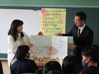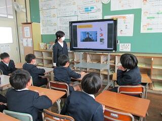 本日、5年生では外国語科の授業で自分のめざすヒーロー、ヒロインについて英語での発表会が行われました。スクリーンに自分のヒーロー等の写真や特徴などを表示し、全員が上手に発表できました。