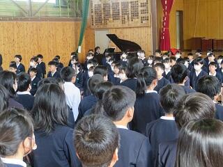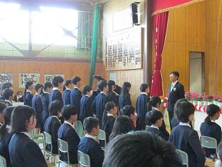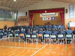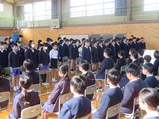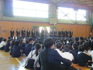 本日、体育館で卒業生全員による卒業証書授与の練習がありました。22日(金)の卒業式に向け真剣な態度で臨んでいました。