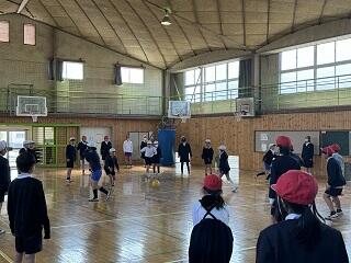 本日の昼休みに、6年生と5年生との交流会を行いました。体育館で一緒にドッヂボールを楽しみ、しっかりよい関係づくりができました。