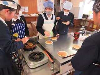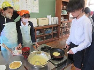 本日、6年生は家庭科の時間に小学生最後の調理実習を行いました。グループごとにホットケーキを作り、出来映えに一喜一憂しながら楽しく食べることができました。