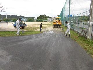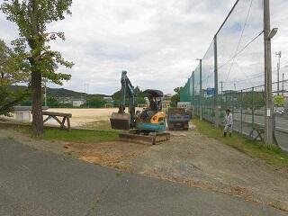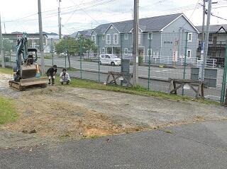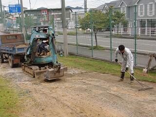 本日、PTA常任委員の方々に正門横の斜面の工事をしていただきました。正門から運動場に子供や車が移動するとき、段差があり危険でしたが、重機を活用しながら10メートルの坂道をきれいに整備していただきとても感謝しております。