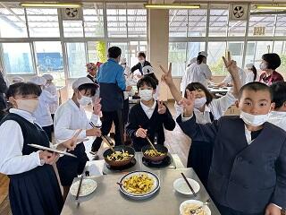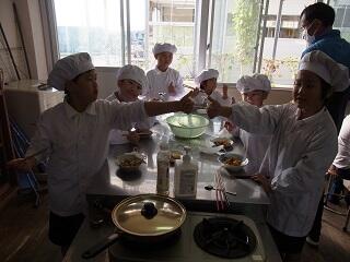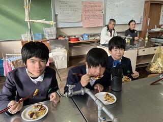 なかよし学級で毎年お世話になっている松村先生と奥様を招いて、感謝の会を開きました。毎年、松村先生の畑を使って、芋の苗植えや芋掘りを行ってきました。収穫した芋を使って大学芋を作って、みんなでおいしくいただきました。その後、みんなでゲームをして遊びました。