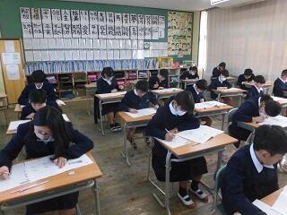 本日、3~6年生は熊本県学力学習状況調査(算・社)、1~2年生は玉名市学力学習状況調査(算)が行われました。前日同様、すこしでも間違いをなくそうと見直しをしたり、すべての枠に記入したりしようと努力していました。