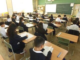 11月下旬から、外国籍の児童が本校に在籍しています。学級担任や本校職員以外にも、NPO法人の方や玉名国際交流協会の方、築山校区の地域の方の協力の下、すこしでも日本語や日本の文化に慣れ親しめるよう教育を行っています。