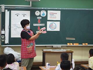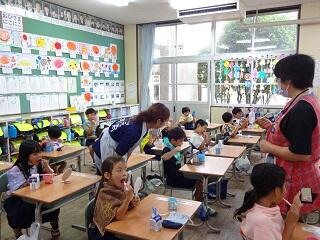 本日、1年3・4組で正しい歯みがきの仕方について、玉名市保健センターの方に指導していただきました。子どもたちは、虫歯にならないように正しい歯みがきがしっかり身につけるため真剣に歯みがきを学んでいました。