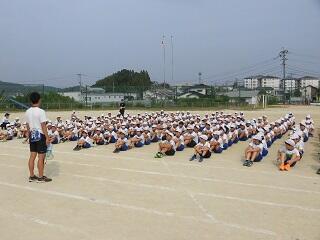 本日から、5・6年生による玉名市陸上記録会に向けた練習が開始されました。自分自身の走力、跳力、投力が伸びるよう全員で協力し頑張ります。競技前後の挨拶や、はいの返事についても、元気よくできるよう練習していきます。