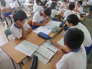 本日、2名の教育実習生が研究授業を行いました。4年生ではネット型ゲーム(バレーボール)の授業、5年生ではけがの防止に関する保健の授業がありました。