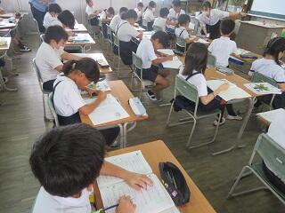 先週は全学級で「学習姿勢コンクール」が実施されました。正しい姿勢の合い言葉「グー、ペタ、ピン」を意識して学習を頑張る子供たちの様子は凛としています。
