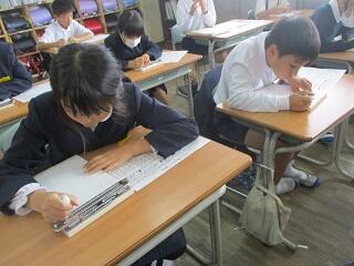 国語での学習と関連付けながら点字の文字を作成することで、住みよい町づくりについて考えていました。