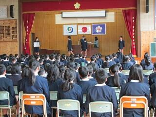 本日、体育館で卒業生全員による卒業証書授与の練習がありました。22日(金)の卒業式に向け真剣な態度で臨んでいました。