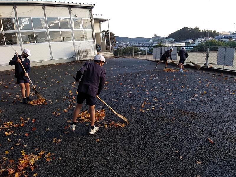 11月11日(木)朝から6年生は、ボランティア活動として落ち葉掃除などをがんばっています。