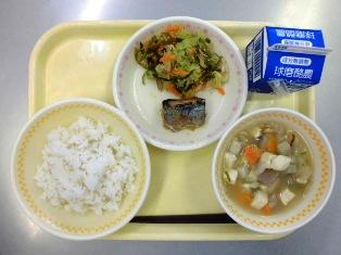 麦ごはん 牛乳 大根と油揚げのみそ汁 さんまのゆずみそ煮 ごまじゃこあえ