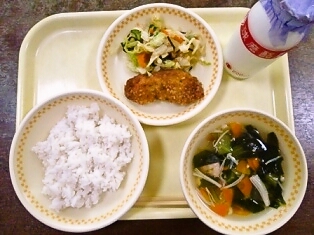 今日の給食は豆と海藻のサラダです。今日のサラダにはいっているわかめには、おなかの掃除をしてくれる食物繊維や骨を丈夫にしれくれるカルシウムが多く含まれています。また、わかめといえば、独特のぬめりがありますが、これは「アルギン酸」という成分で、血圧が高くなるのを防いだり、動脈硬化などの病気を防いでくれます。体に大切な栄耀がたくさん入っていますので、好き嫌いせずに食べて下さいね!