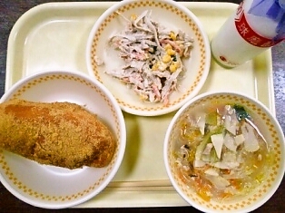 牛乳 きなこ揚げパン 春雨スープ ごぼうサラダ