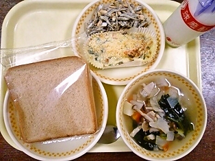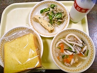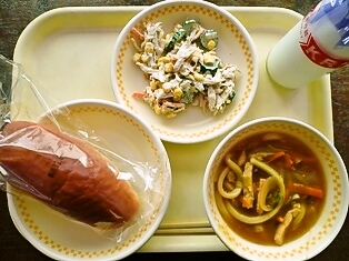 牛乳 ミニミルクパン カレーうどん かみかみするめサラダ