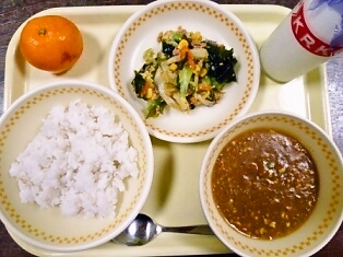 牛乳 キーマカレーライス ツナと海藻のサラダ みかん