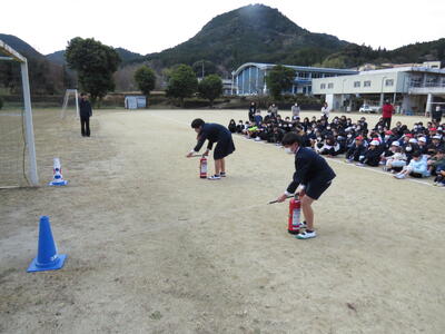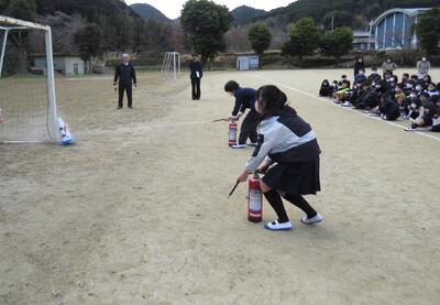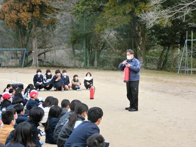 1月23日(金)に避難訓練を実施しました。今回は、火災を想定して訓練を行いました。子供たちも真剣に訓練に臨むことができ、火災発生から2分50秒で避難を完了することができました。また、避難後は講師の立尾電設の方から、消火器の使い方等を教わりました。火災が起きないことが一番ですが、もしもの場合に自分の命を自分で守れるように、今回の訓練の経験をいかしてほしいと思います。