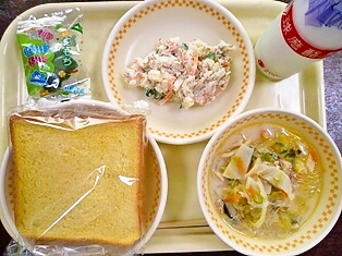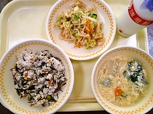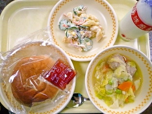 今日の給食は、チンゲンサイと卵のスープです。今日の給食に使われている"チンゲンサイ"は、中国から伝わってきた野菜です。今から40年くらい前に日本に伝わってきました。チンゲンサイには、ビタミンCやカロテンが多く含まれています。そのため、風邪を予防したり、目の疲れをとってくれる働きがあります。栄養たっぷりの野菜ですので、今日のスープも残さずしっかり食べて見て下さいね!