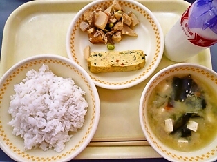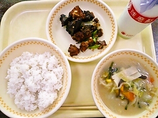 今日の給食は、ジャージャン豆腐です。ジャージャン豆腐のジャージャンは、「家」という漢字と、いつものという意味の「常」という漢字があてられます。つまり、家に常にある材料で作る豆腐の炒め物です。麻婆豆腐は、細かく刻んだ野菜とひき肉を炒めて、赤みそで味付けしますが、ジャージャン豆腐は、食べやすい大きさに野菜を切って、豚肉の薄切りを米みそなどで味付けしています。