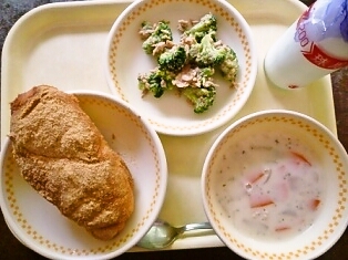 牛乳 きなこ揚げパン クリームスープ ブロッコリーサラダ