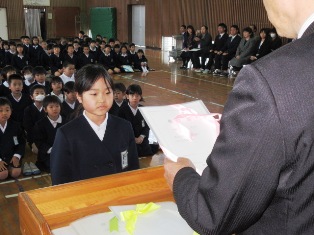 修了式があり、1年生から5年生までの児童が修了証を手にしました。