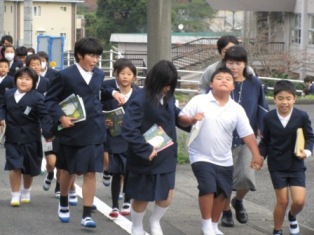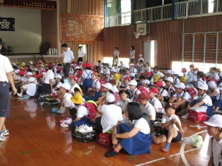 体育館に登校班ごとに集合し、危険箇所を確認しながら帰りました。