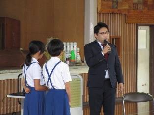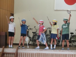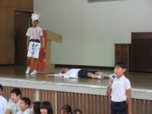 児童集会で生活委員会があいさつの仕方について発表しました。