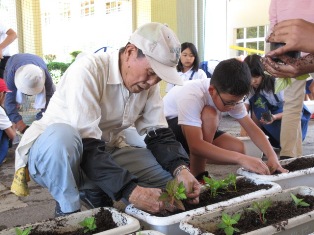 学校応援団の皆様のご協力のもと、花の苗植えをしました。