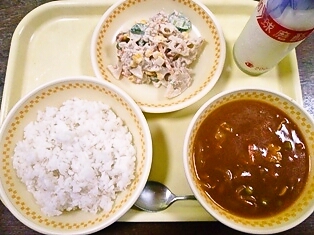 献立名:麦ご飯 牛乳 キーマカレー 海藻サラダ セレクトゼリー