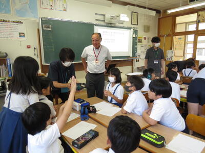 10月17日(金)に、4年生が社会科の授業で防災士の大川さんに、「自然災害から自分の命を守るために」という内容でお話をうかがいました。津奈木町の防災備蓄倉庫や災害伝言ダイヤルについてなど、たくさんのことを教えていただきました。学んだことを家族にも話して、災害から自分の命を守れるように準備をしたいと思います。