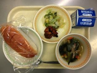 ミルクパン 牛乳 チンゲンサイとコーンのスープ タンドリーチキン 甘夏サラダ