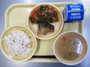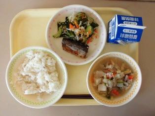 麦ごはん 牛乳 たぬき汁 さんまの甘露煮 わかめの酢の物