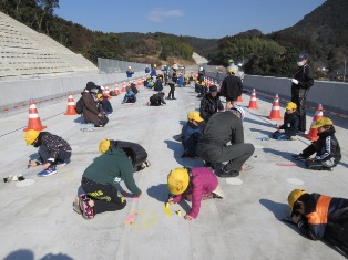 できあがった作品はアスファルトで埋められて見えなくなってしまいますが、きっと子どもたちの心には、そこを通るたびに思い出されることでしょう。