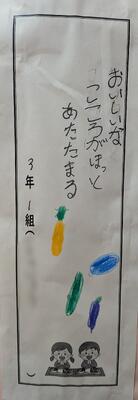 1月24日から30日は、全国学校給食週間でした。津奈木小学校では、給食についての標語を全校で考え、給食の歴史について栄養教諭の山﨑先生に教えてもらうなどの取組を行いました。