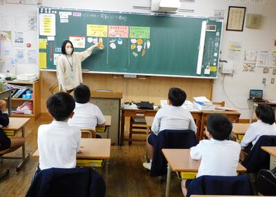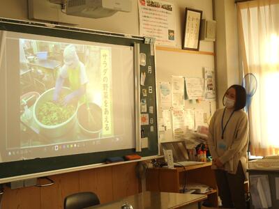 1~4年生は、毎日食べている給食がどのようにつくられているかについて学びました。美味しく、温かく、安全につくる工夫や努力、栄養バランスよく食べることの大切さなどについても、学活の時間に山﨑先生に教えていただきました。