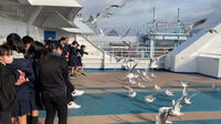 6年生 修学旅行②長崎県に入りました!! 投稿日時 : 10:09 3年生 6年生は、オーシャンアローに乗って、長崎県に上陸しました。 オーシャンアローでは、かもめたちの大歓迎を受けました。 6年生、みんな元気です。