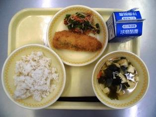 麦ごはん 牛乳 とうふ汁 魚のレモン漬け いんげんのおかかあえ