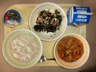 麦ごはん 牛乳 ひき肉カレー ひじきマリネサラダ ヨーグルト