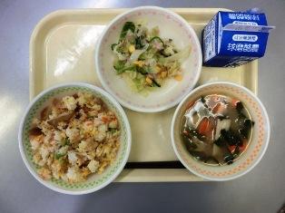 寒漬チャーハン 牛乳 ワンタンスープ 中華サラダ