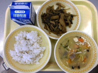 献立名:麦ご飯 牛乳 石狩汁 きんぴらごぼう